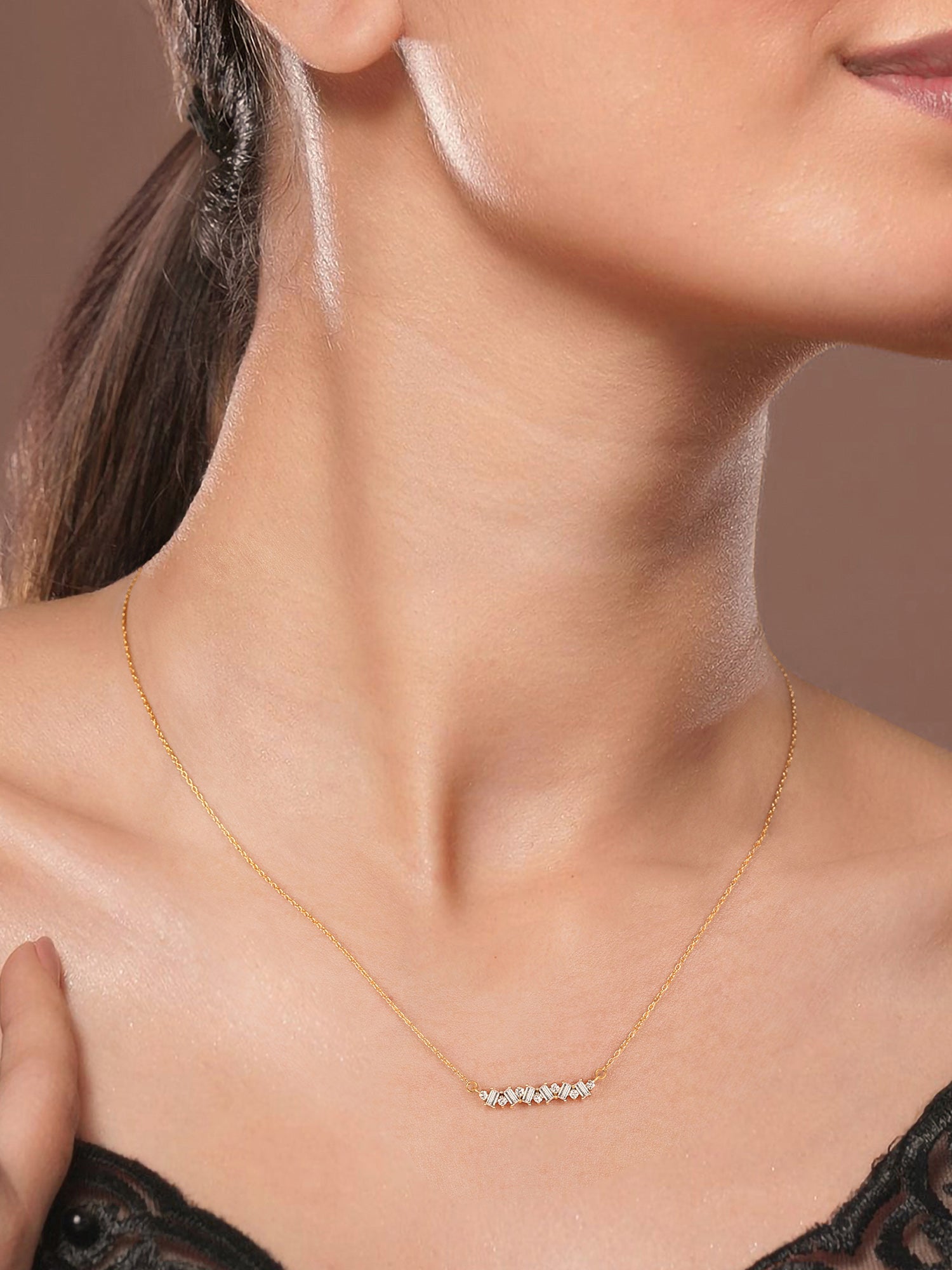 High on trend, this baguette of lab diamonds makes this necklace super stylish. Easy pairing with all outfits.
