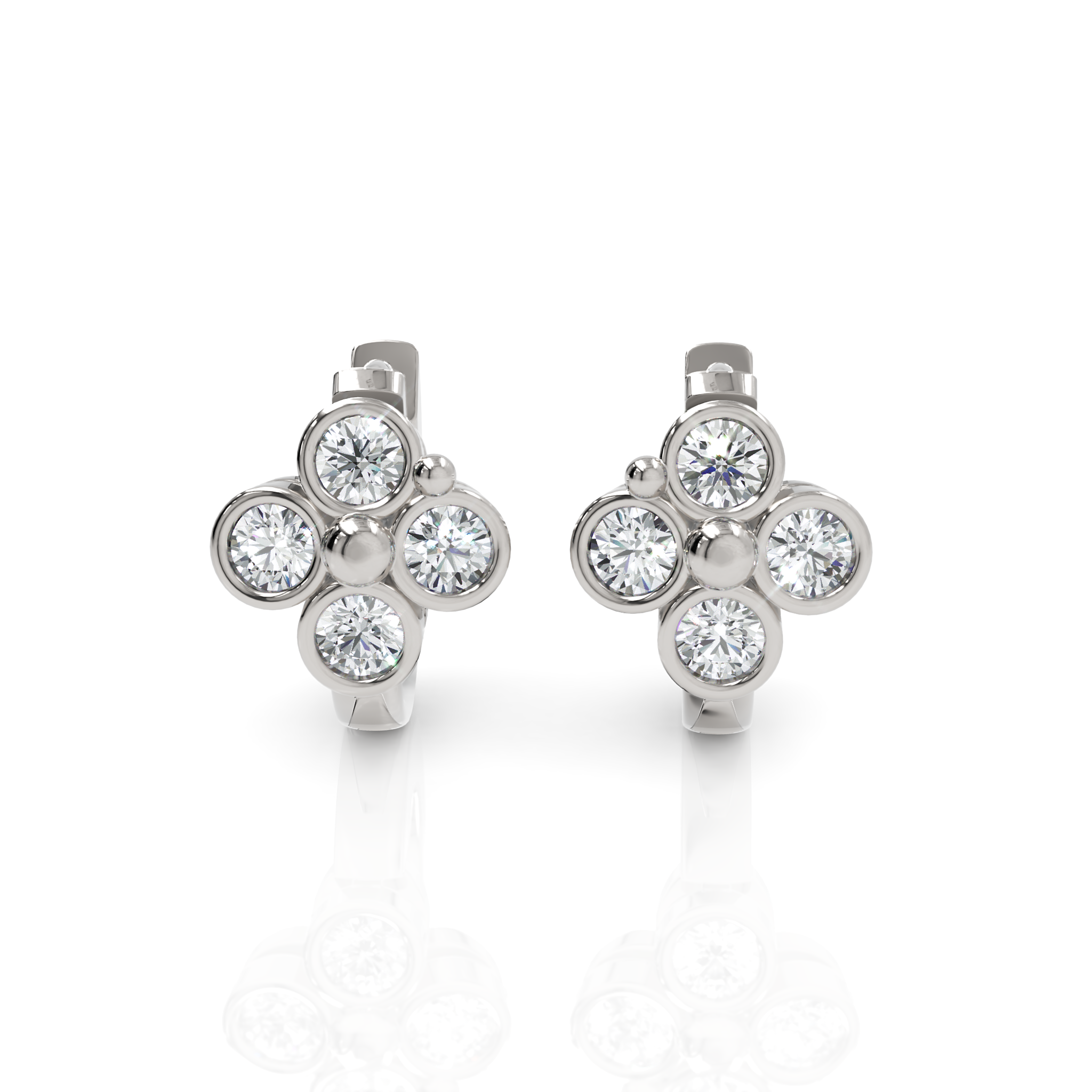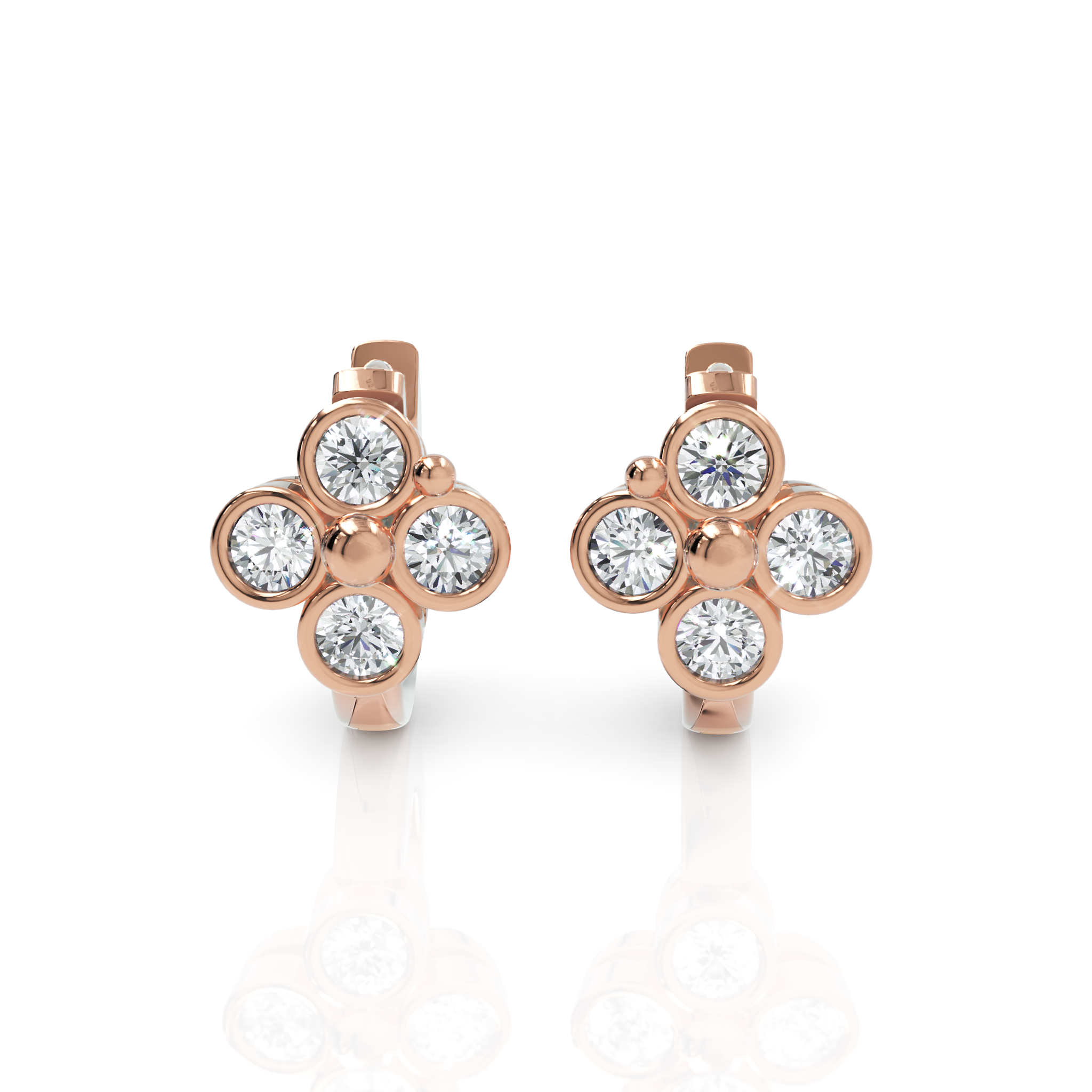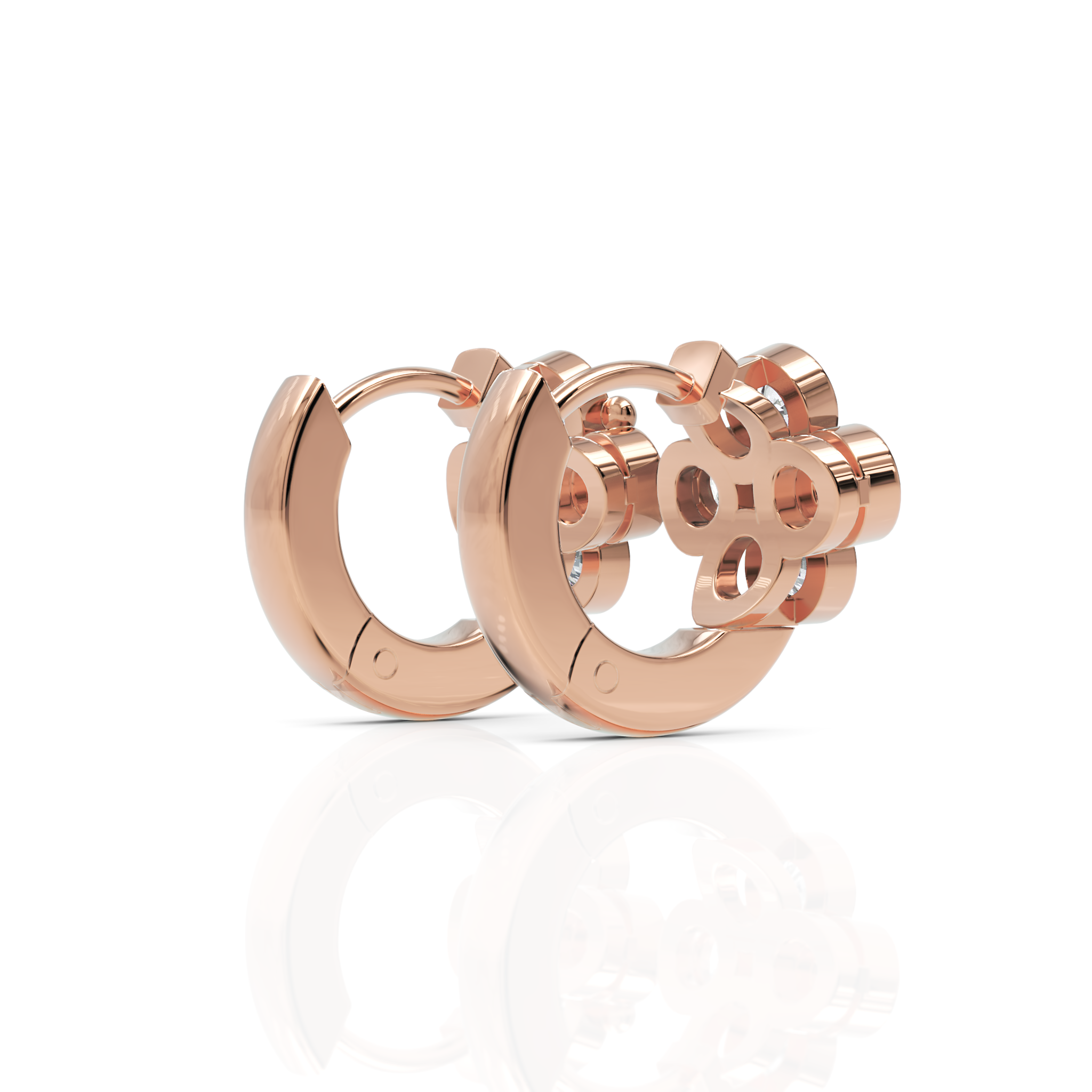 Expertly crafted, these Bezel Setting Floral Diamond Hoop Earrings add a touch of elegance to any outfit. The bezel setting secures the diamonds in place, while the floral design adds a unique and feminine touch. Made from premium materials, these earrings are perfect for a special occasion or everyday wear.