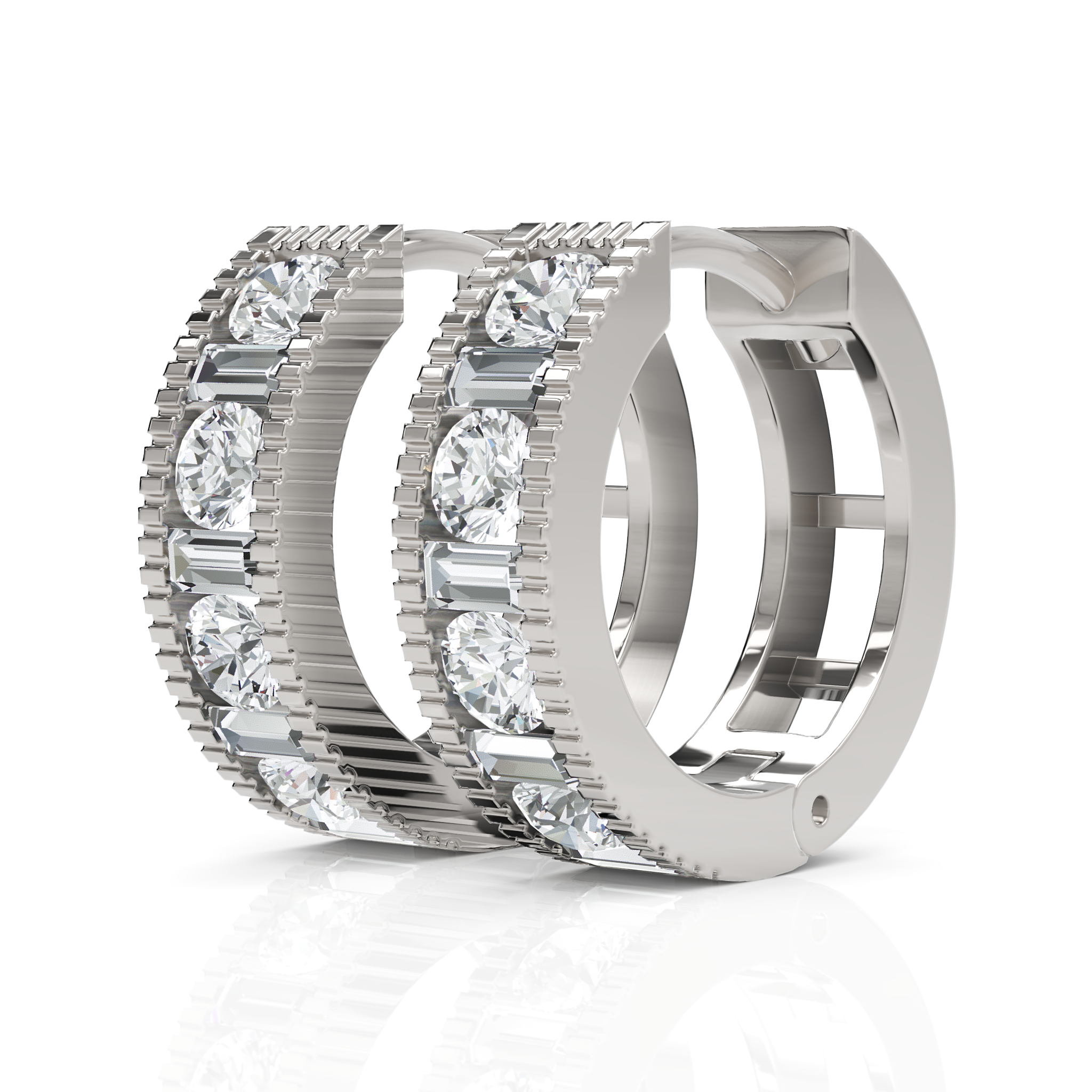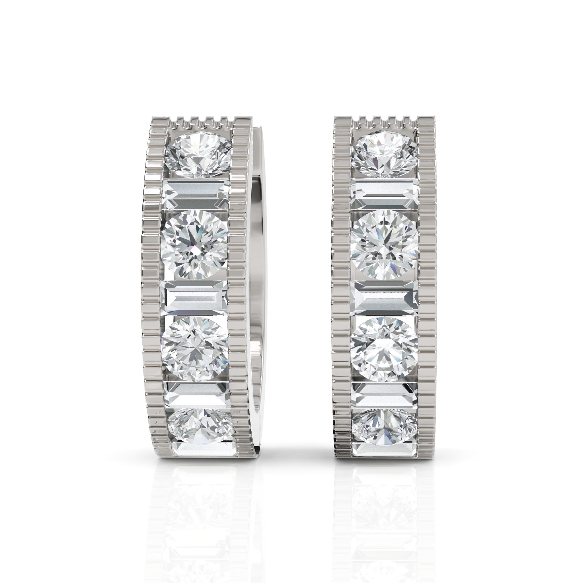 Discover the timeless elegance of our Elegant Baguette & Round Cut Diamond Hoops. Crafted with precision and expertly designed, these hoops showcase a stunning combination of baguette and round cut diamonds, making them a versatile and classic addition to any wardrobe. Elevate your style and sophistication with these diamond hoops.