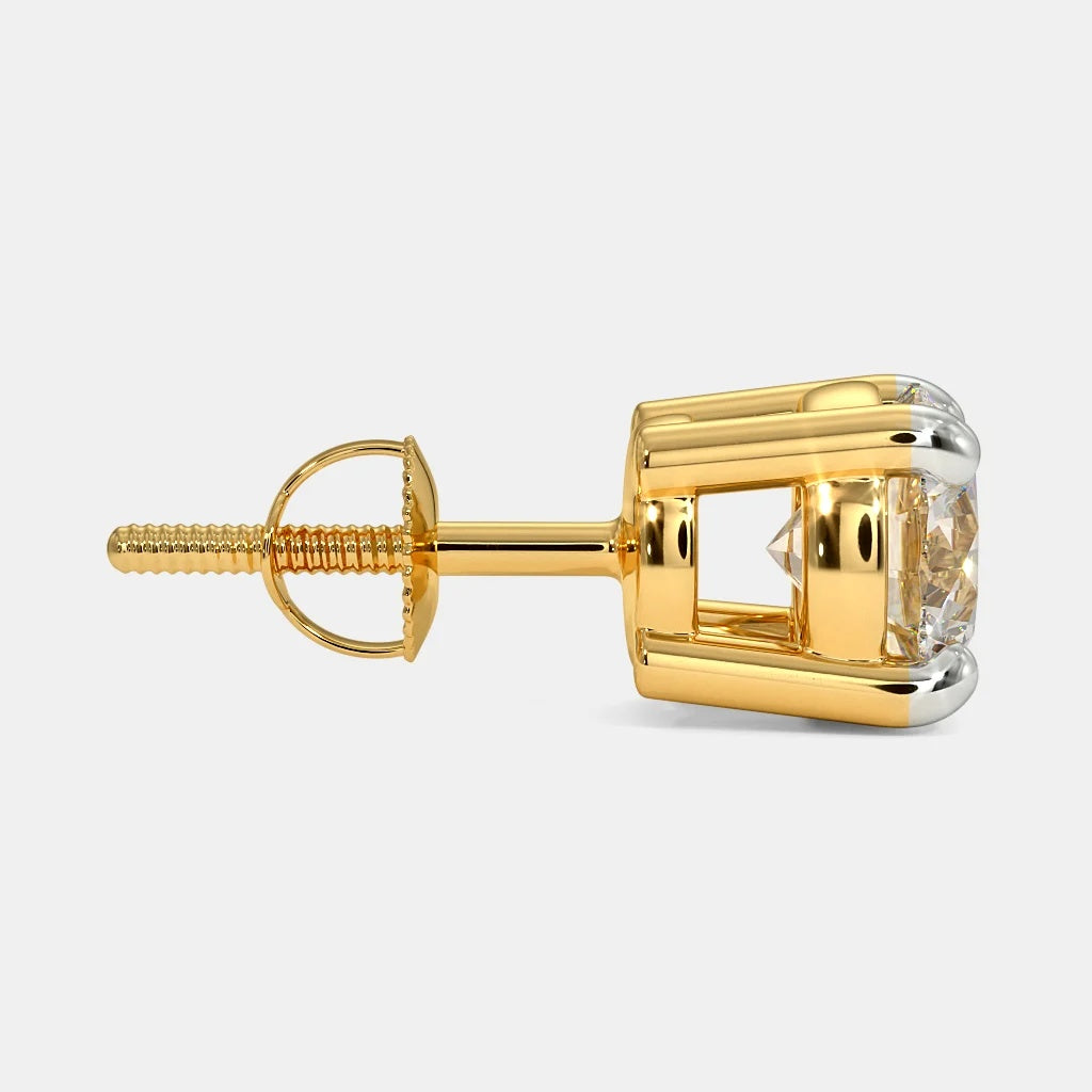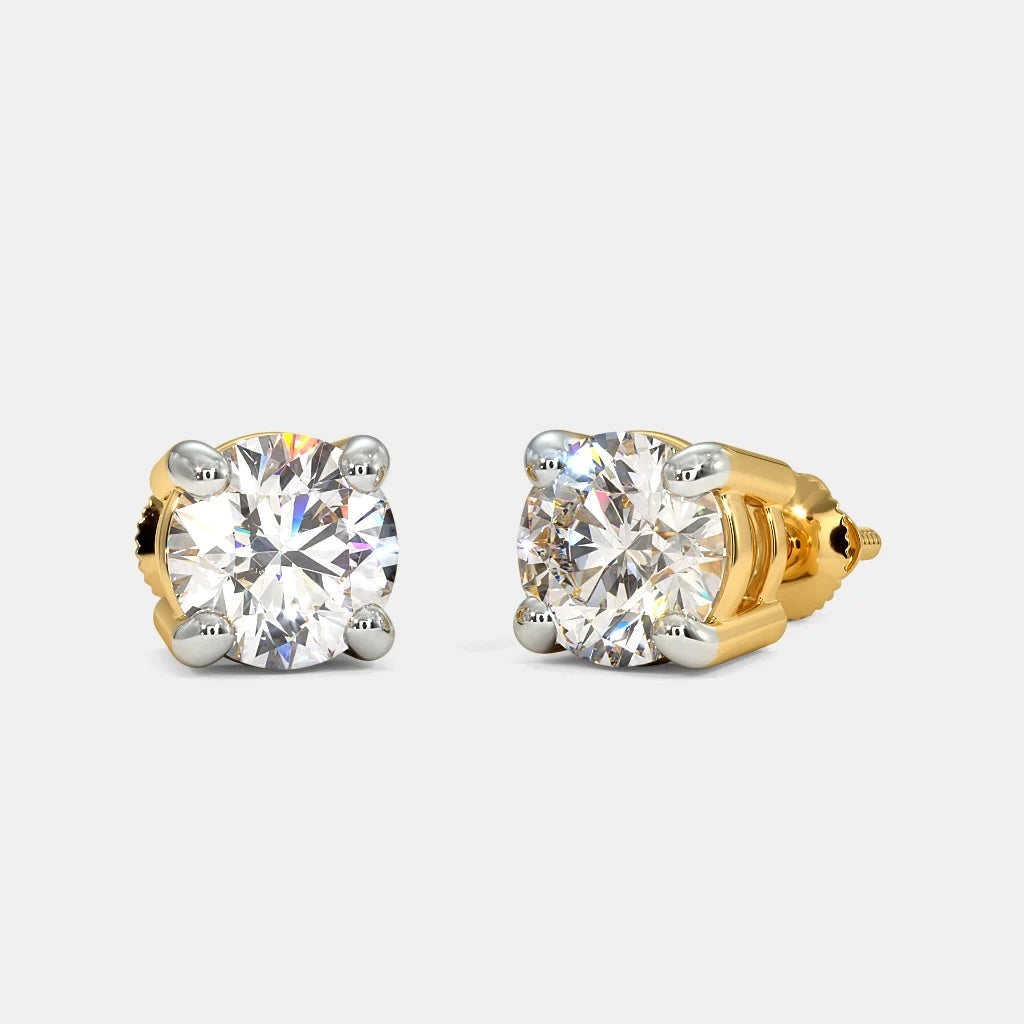These elegant stud earrings feature brilliant round diamonds, securely set in a classic four-prong design crafted with a combination of yellow and white gold. The two-tone setting enhances the diamonds' brilliance, making these earrings a timeless and versatile accessory.