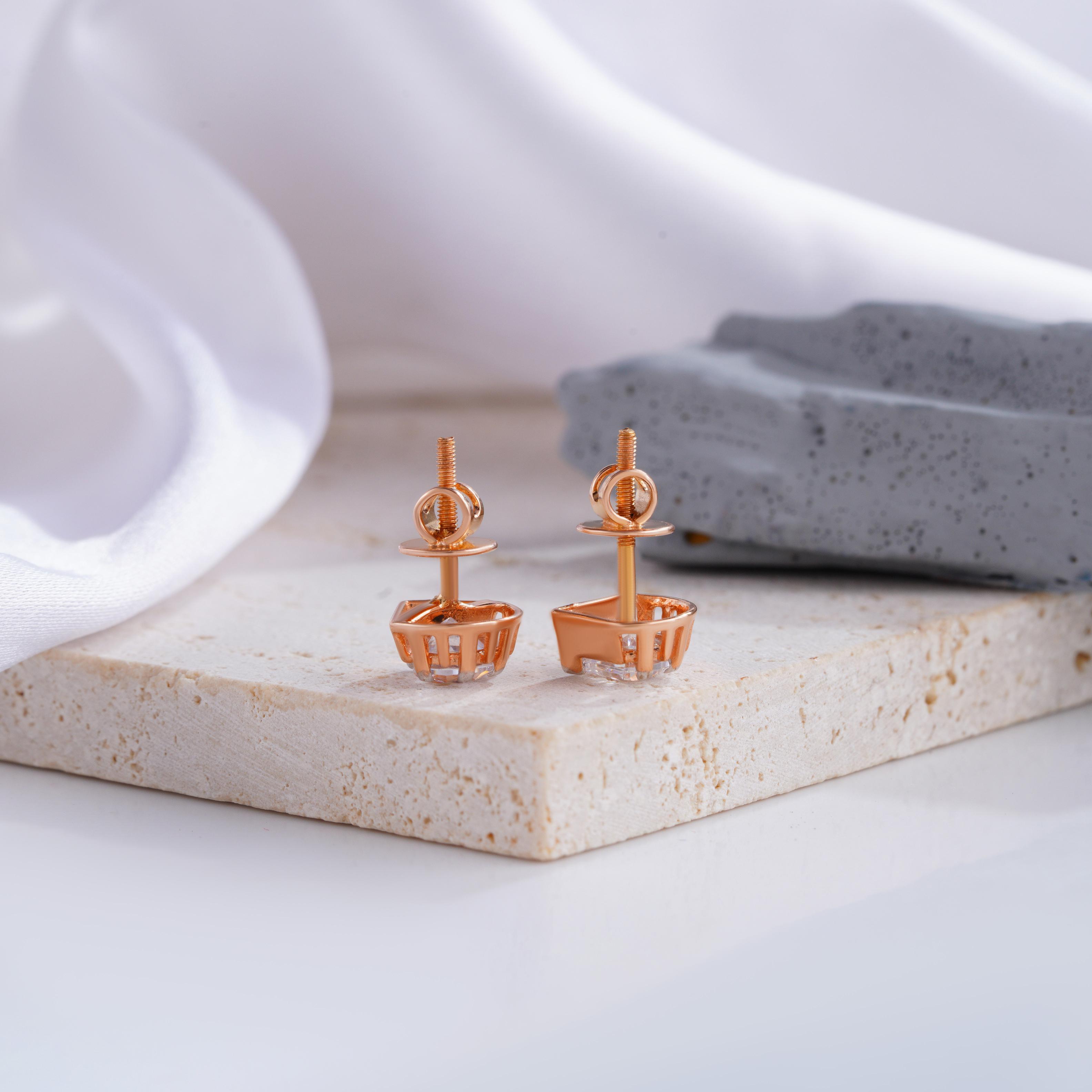 These exquisite diamond stud earrings feature a modern half-bezel design, set in a warm rose gold finish. The unique half-bezel setting allows the diamonds to sparkle brilliantly while providing a secure hold. With their contemporary design and classic elegance, these earrings make the perfect statement piece for any occasion. The rose gold enhances the radiance of the diamonds, offering a chic and timeless appeal. Perfect for elevating everyday wear or adding a touch of sophistication to special events.