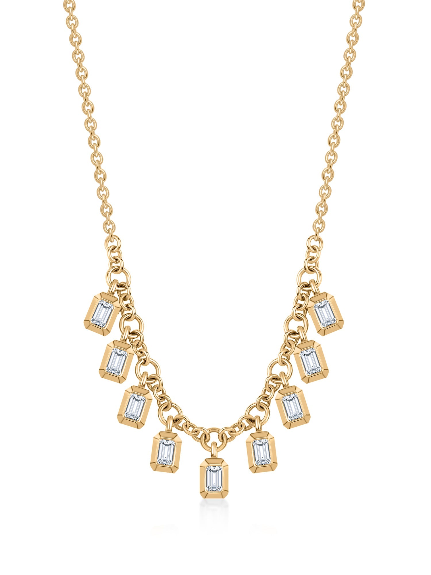 A ray of glitter shines across your neckline with this lab diamond necklace for women. A designer necklace that is meant to add just the right amount of shine, which will make you sparkle with joy.