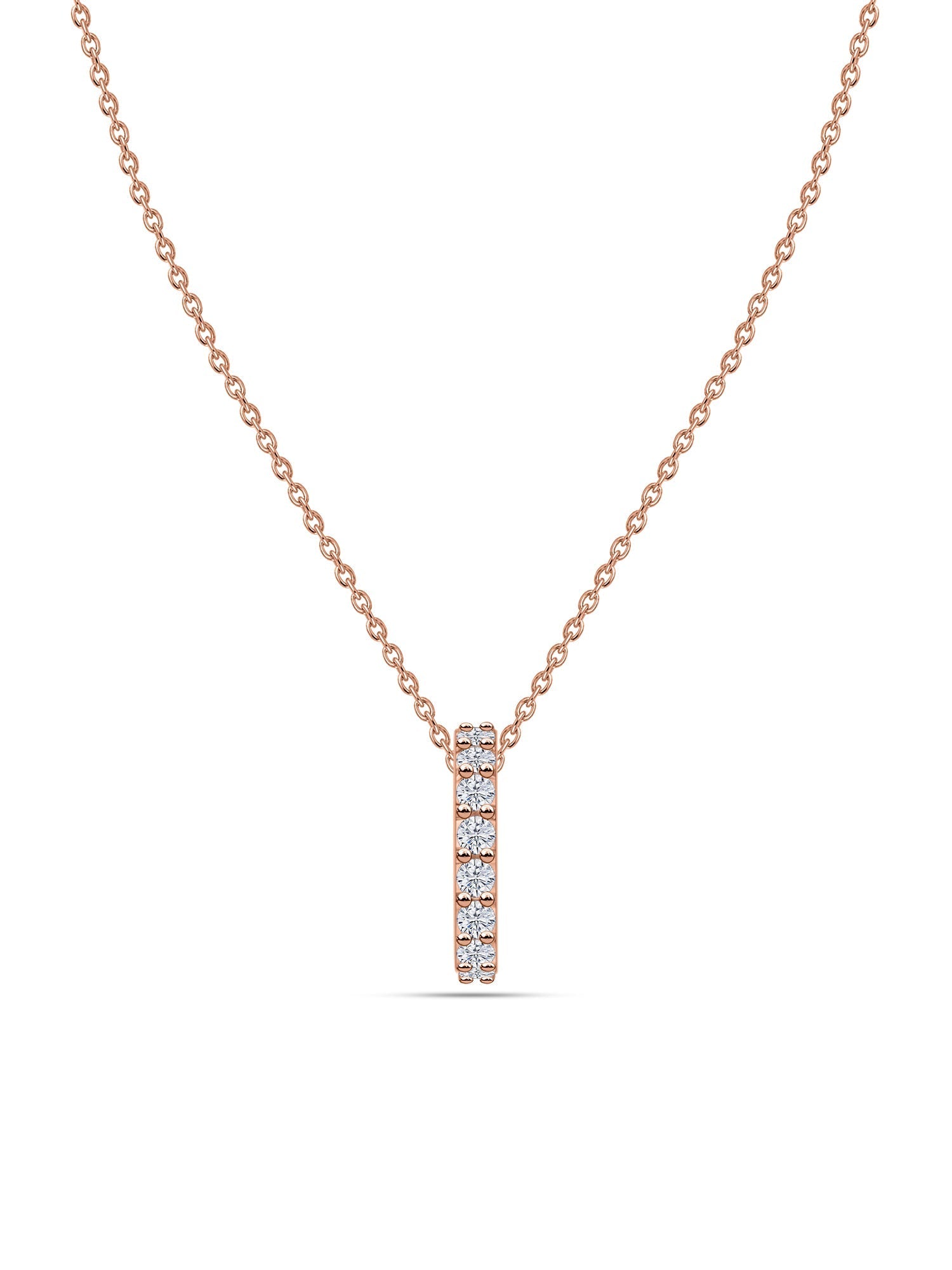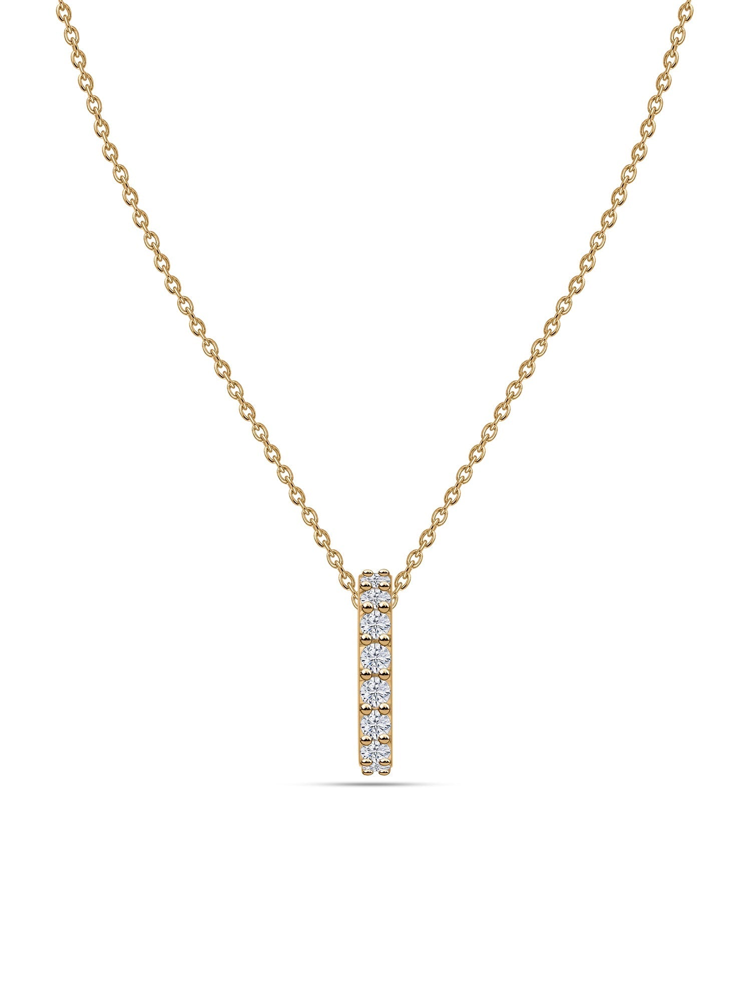 A refined statement of elegance, this vertical gold pendant gleams with a line of radiant lab diamonds. Its geometric silhouette is ideal for both modern styling and classic layering.