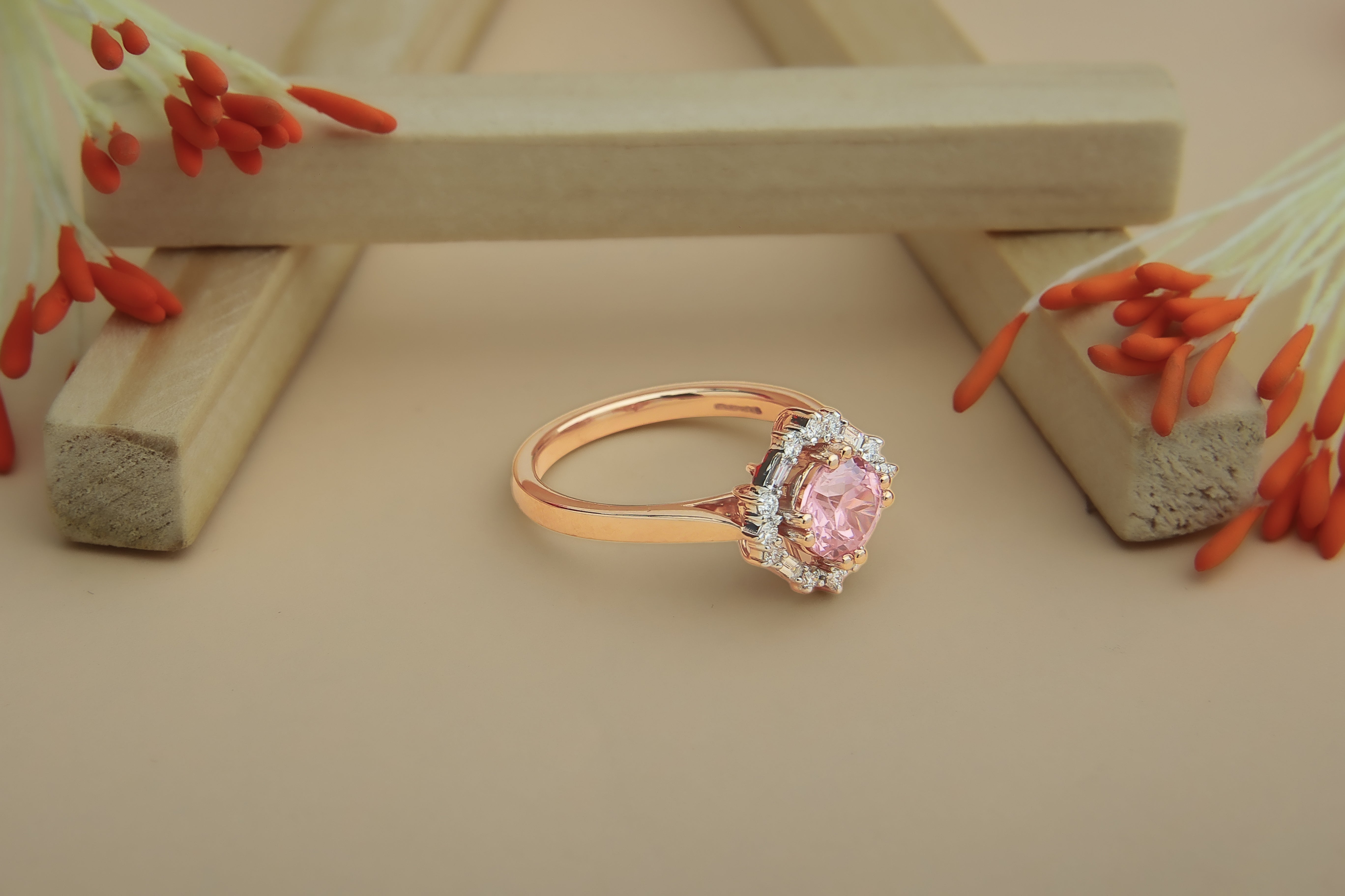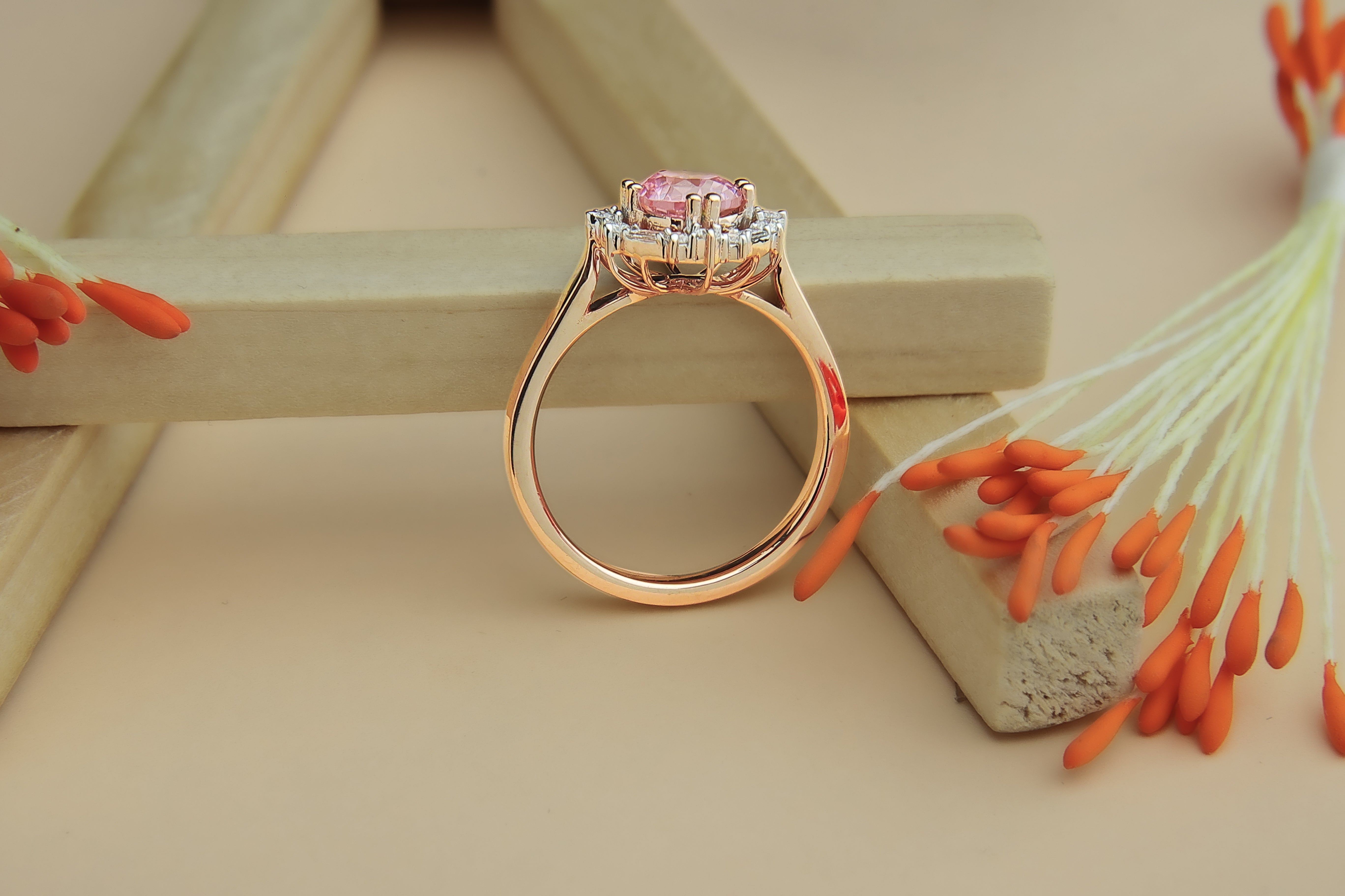 Pink Sapphire Ring with Diamond Accents in Prong Setting