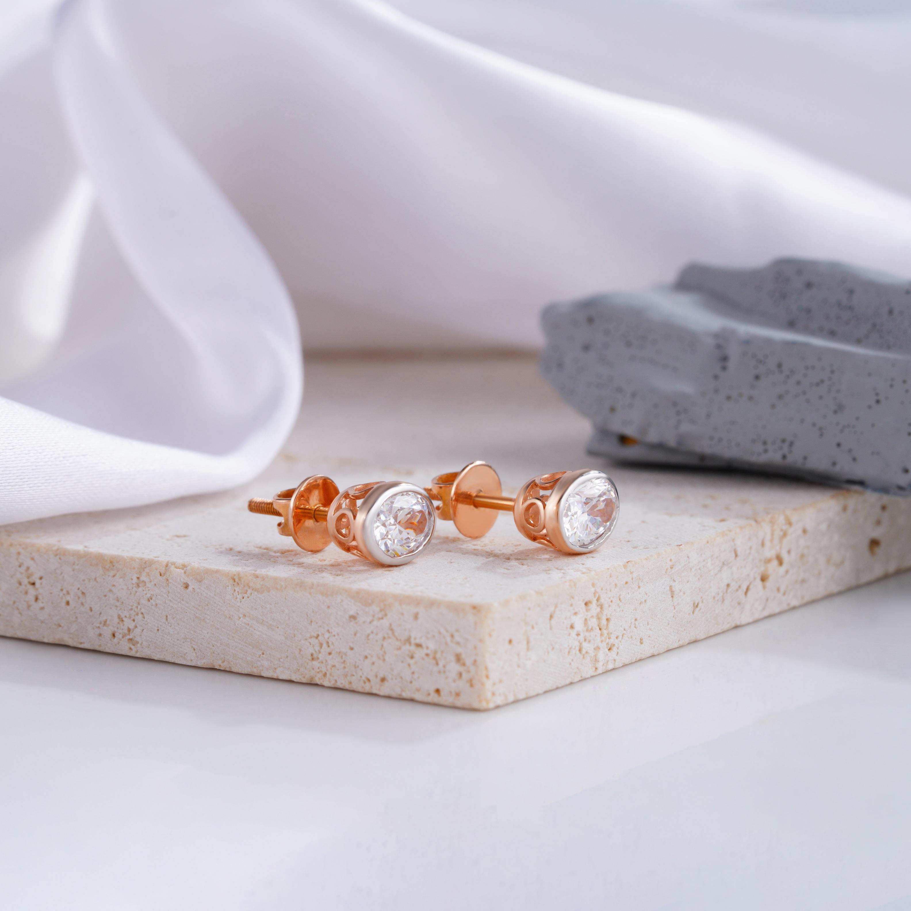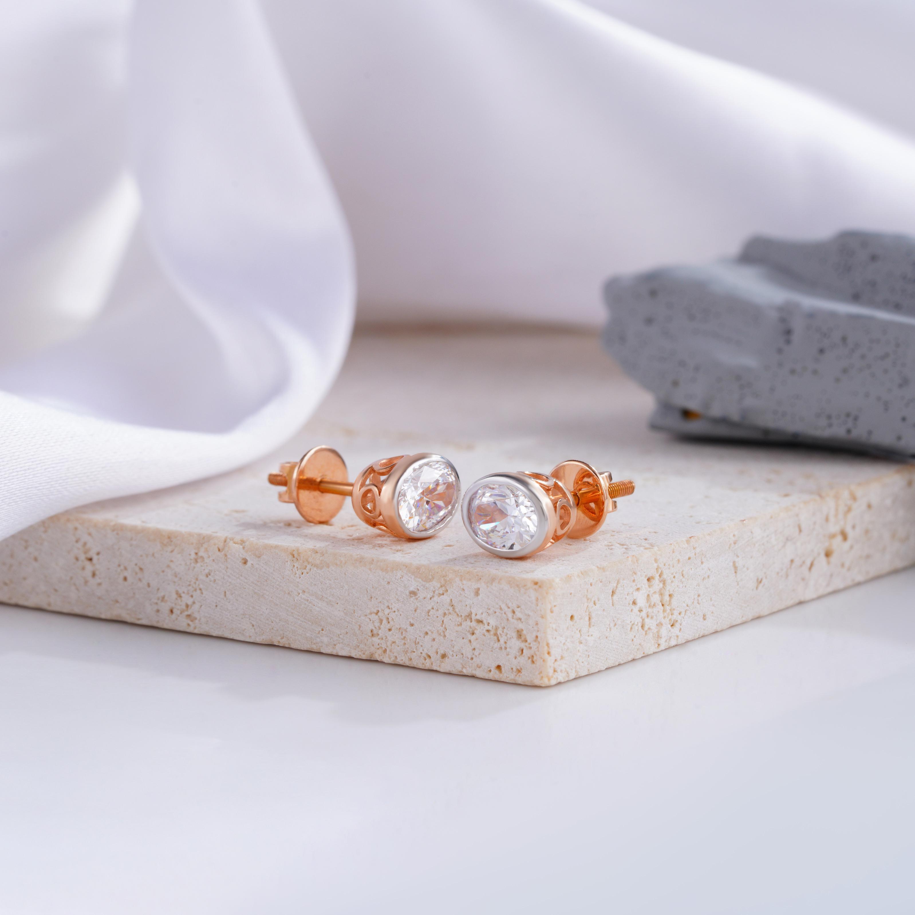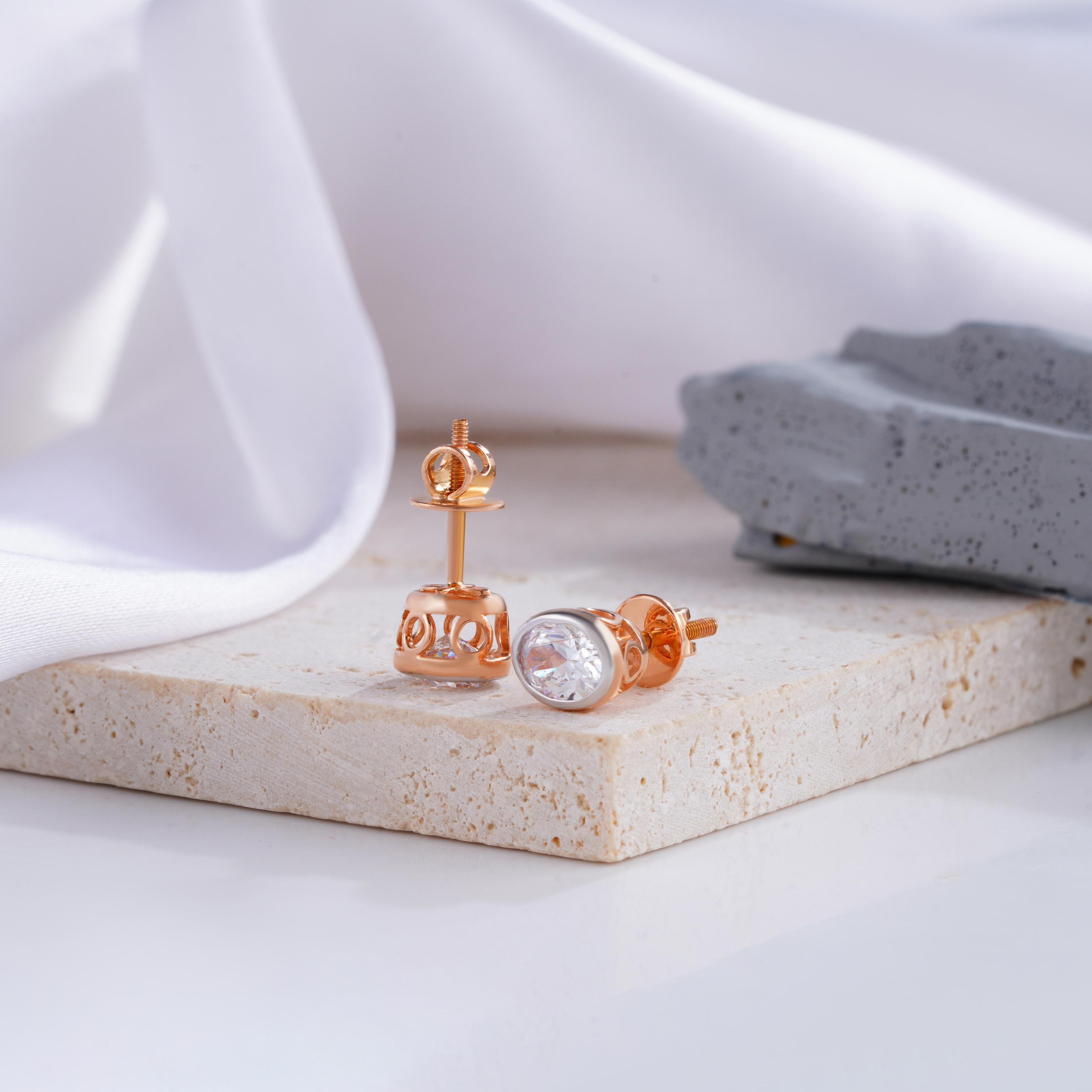 These stunning stud earrings feature oval-cut diamonds set in a modern rose gold bezel setting. The combination of brilliant sparkle and the warm tone of rose gold creates a sophisticated yet understated look, perfect for both everyday elegance and special occasions. These earrings are designed for those who appreciate timeless beauty with a contemporary twist, offering a versatile and luxurious addition to any jewelry collection.