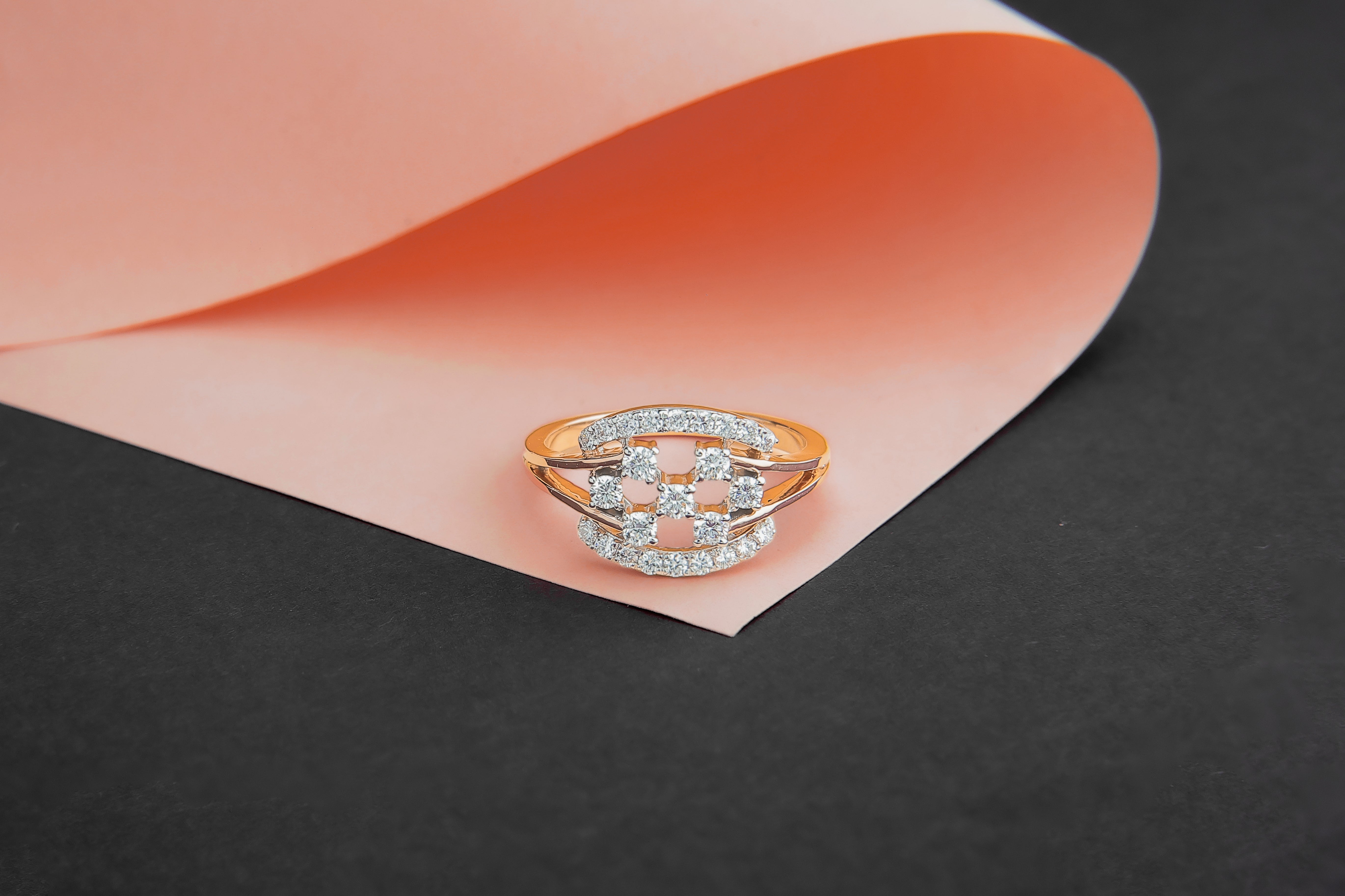 Elegant Rose Gold Ring with Round Diamond Cluster Setting
