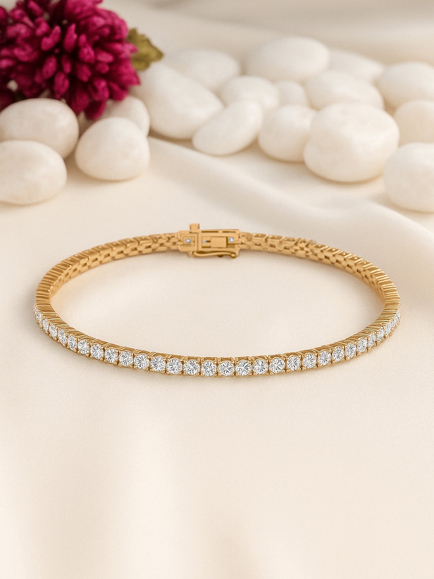 A graceful gold bracelet featuring a perfect row of shimmering lab-grown diamonds. Designed for effortless sophistication, it brings just the right amount of sparkle to your everyday and special moments alike.