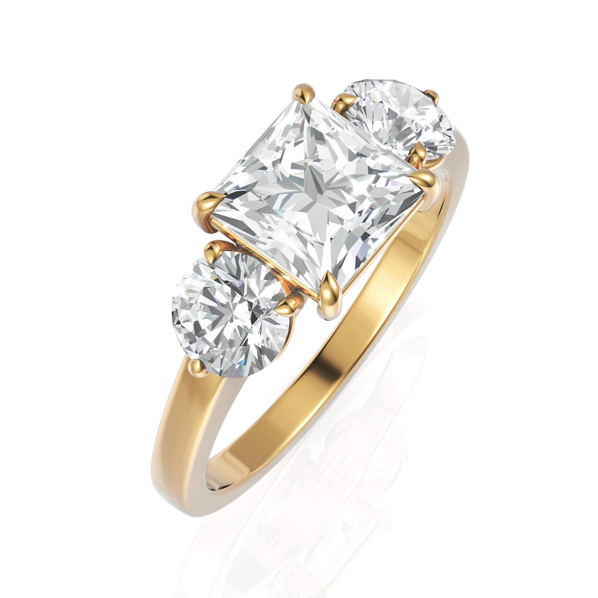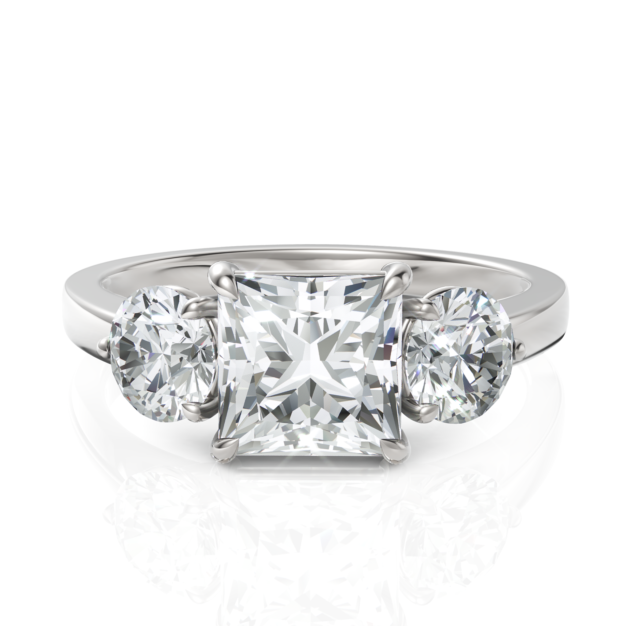 Princess Cut & Round Cut Three Stone Diamond Ring (1.50 CT. Princess Cut)