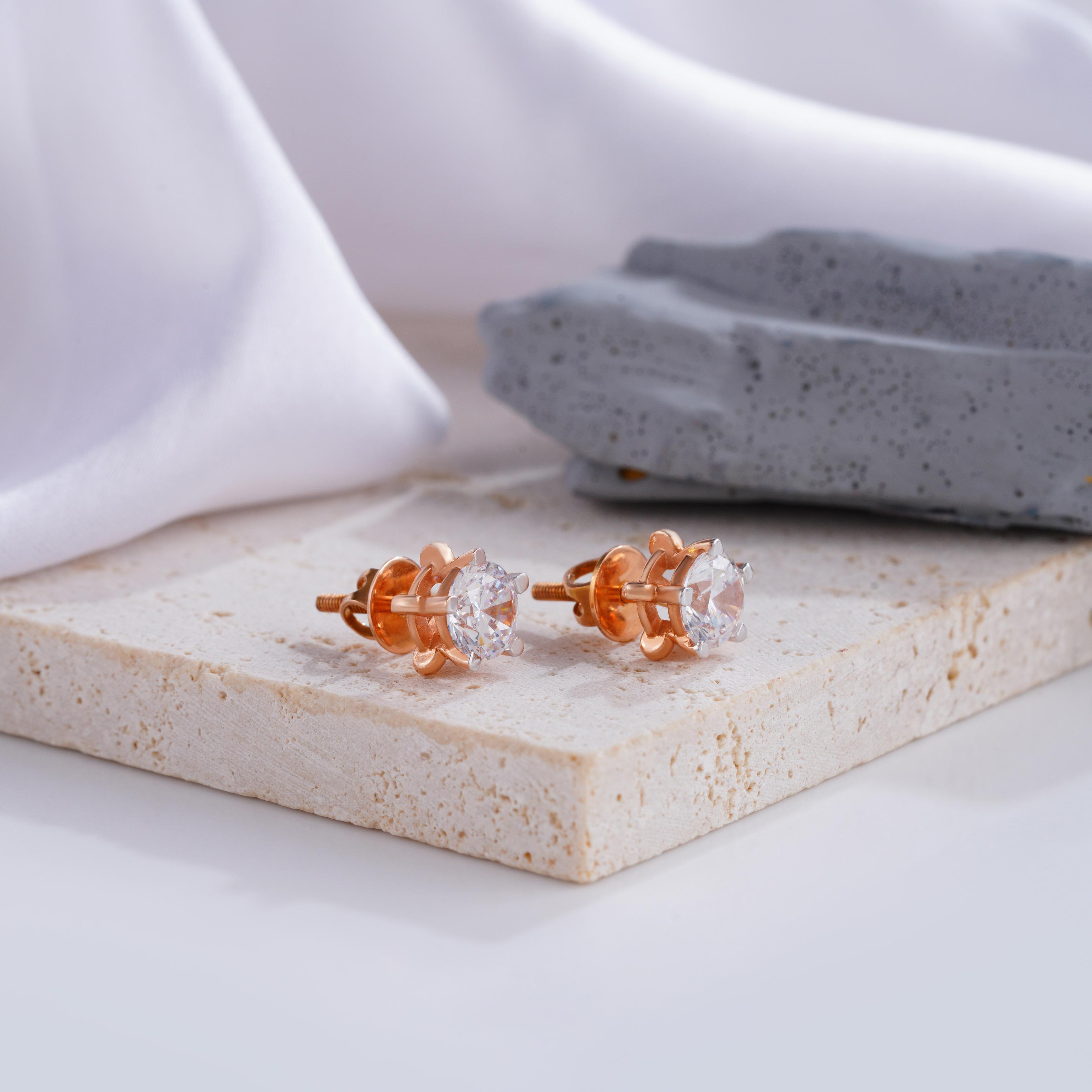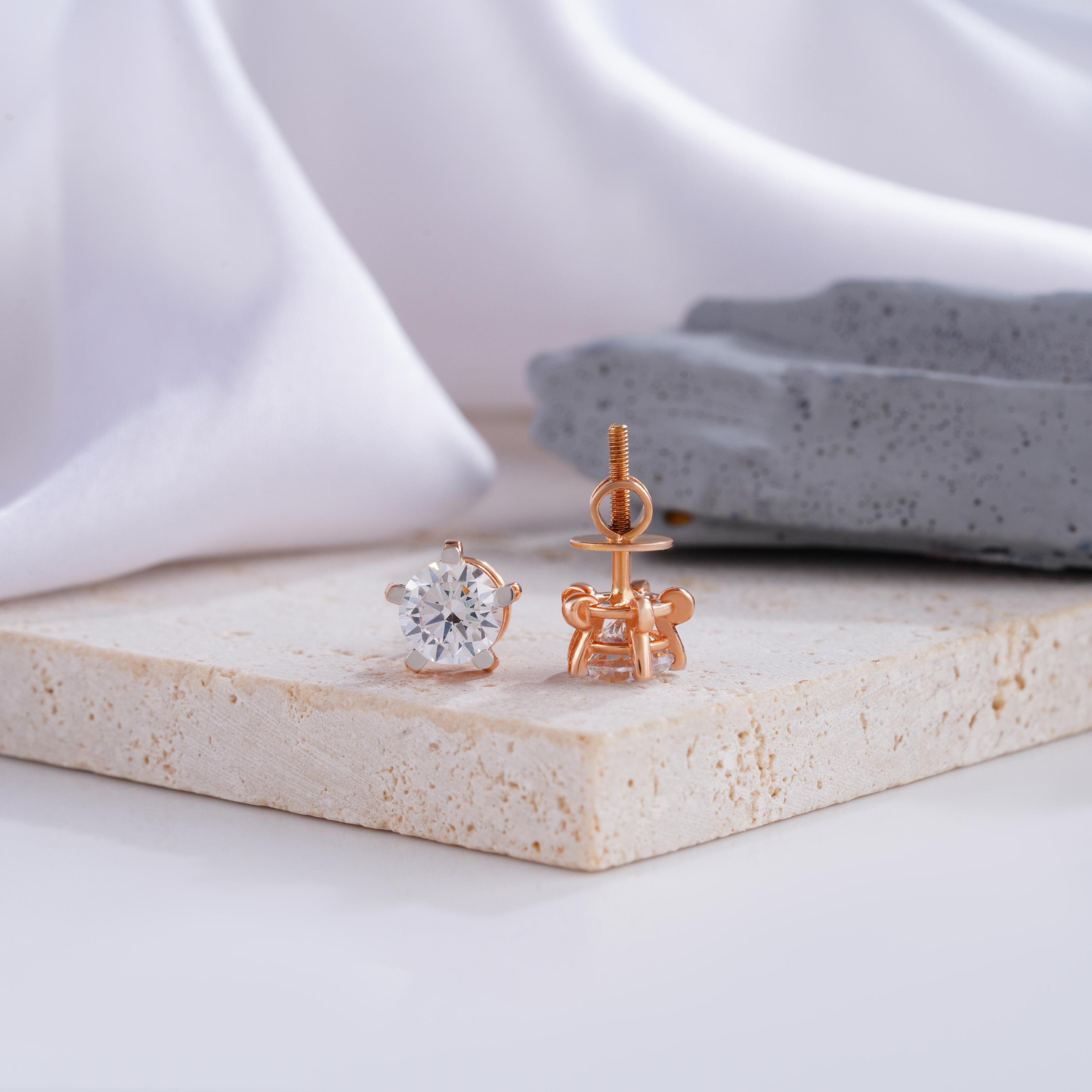 These classic round brilliant diamond stud earrings are elegantly set in a delicate rose gold prong setting. The simplicity of the design allows the diamonds to take center stage, showcasing their unmatched brilliance and fire. Perfect for everyday wear or special occasions, these studs add a sophisticated sparkle to any ensemble. A must-have addition to any jewelry collection, exuding timeless elegance and charm.